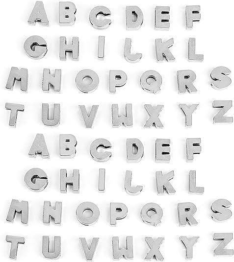 All letters are upper-case as shown. Letters will be assembled on finished bracelet, but can be removed at any time