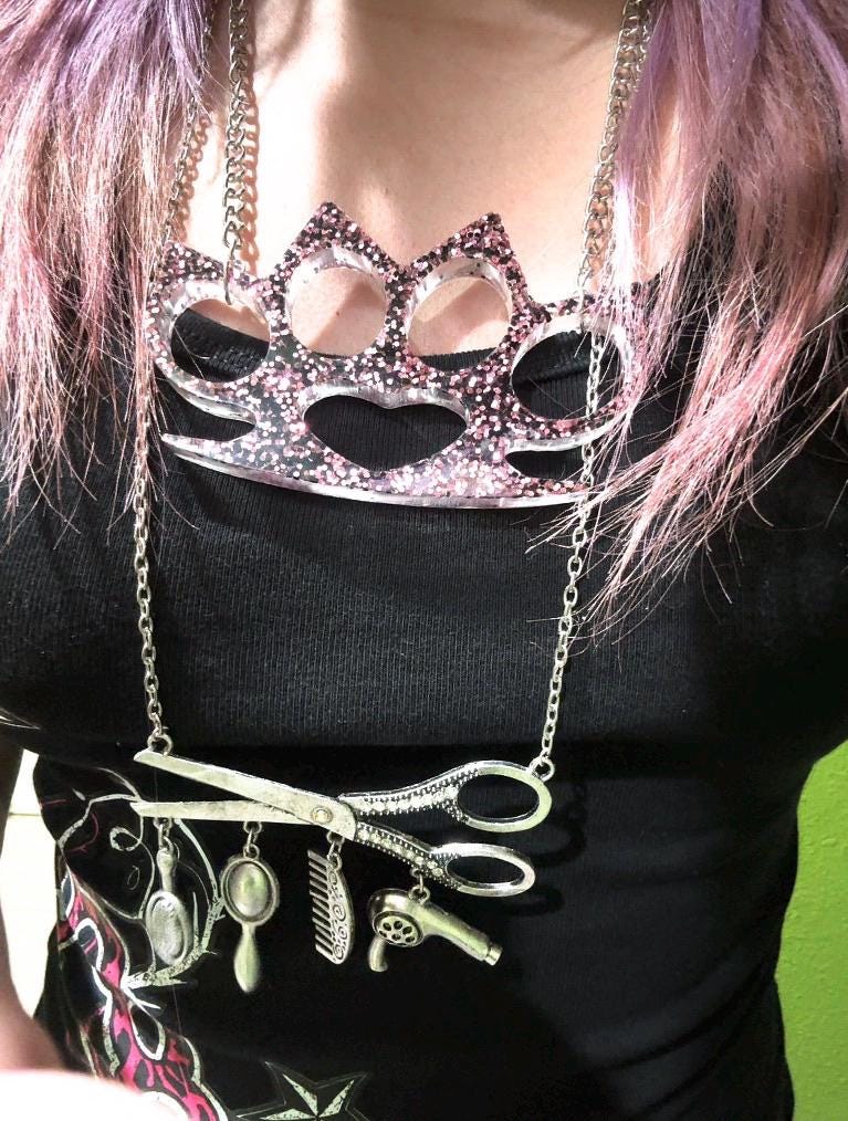 Charms include comb, brush, scissor, and mirror