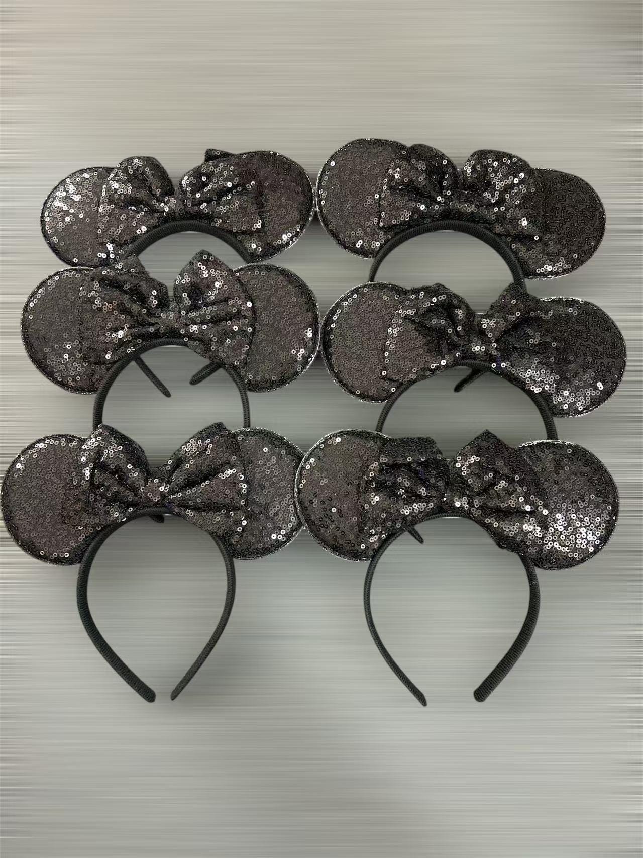 - Quantity: 6 pc black bow with black sequin ears