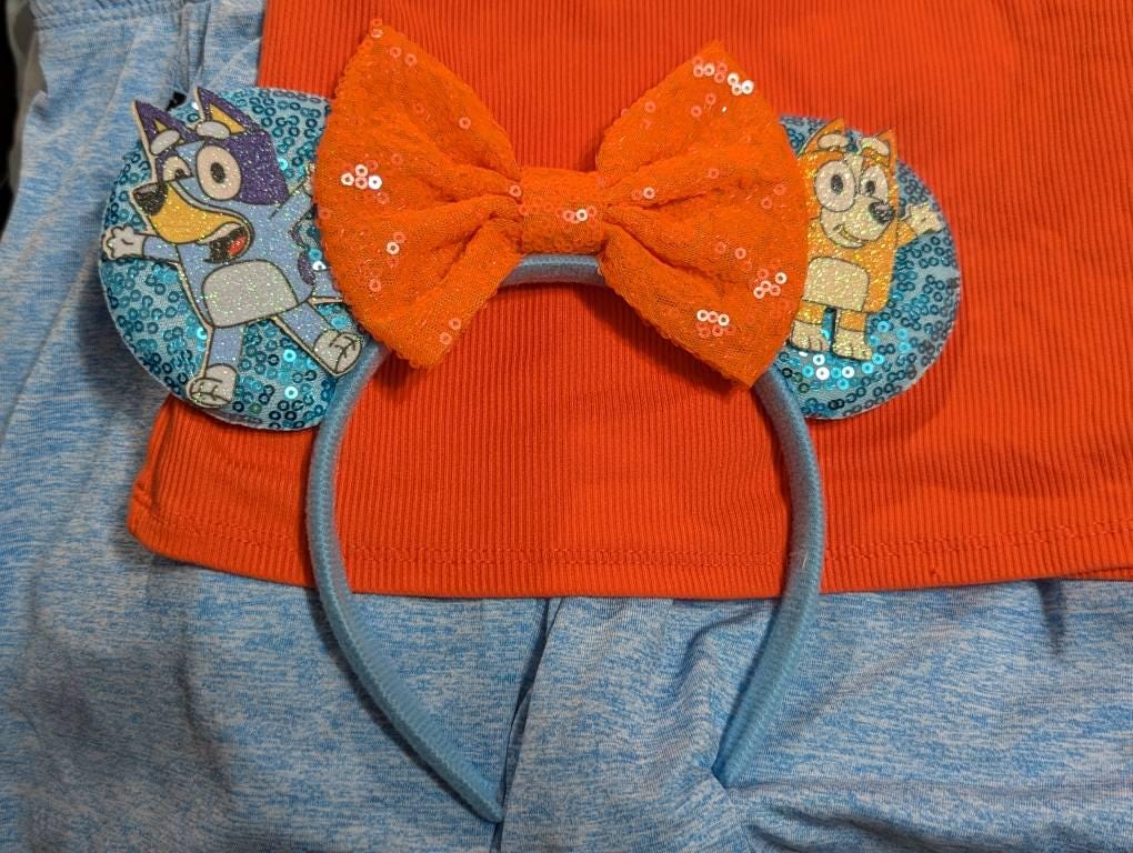 HANDCRAFTED: Blue Dog Minnie Ears, Disney Ears, Blue Ears, Dog Mickey Ears, Blue Minnie Mouse Ears, Mickey Mouse Ears, Disneyland Mouse Ears